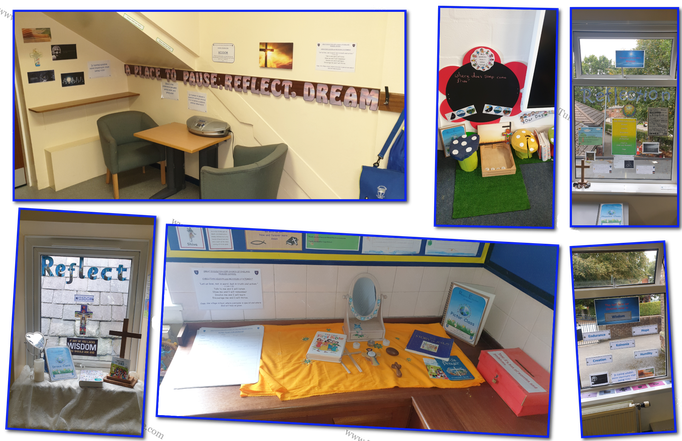 Our class reflection areas relate to the half termly Christian values so that children have opportunities to deepen their understanding and thoughts being the messages of worship.